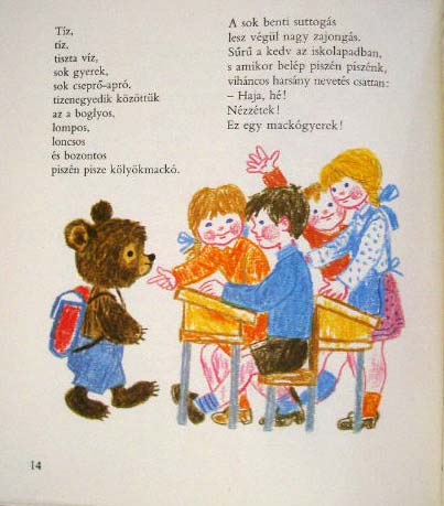 【商品番号】HE-024 【絵/文】 Reich Karoly/ 【発行年/出版社】 1989年/MORA 【サイズ/ページ数】 22.9×20.3cm/72P ハードカバー ハンガリー語 【イラスト】 ほぼ全てのページにカラーイラスト。 【状態】 表紙に小さなへこみが2箇所ありますが、概ね良好。 【内容】 小ぐまが主人公のお話に、レイク・カーロイがイラストを描いています。 クレヨンで描かれたとっても可愛いイラストです。 【価格】 SOLD OUT |