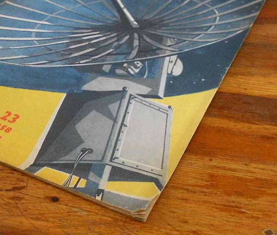 【商品番号】VE-012 【発行年】 1958年 【サイズ/ページ数】 28.5×20.5cm/32P チェコ語 【状態】 全体的に折れ、若干の痛み、ヤケがありますが、概ね良好。 【内容】 「青年の科学と技術」というチェコスロバキア時代の雑誌。 高学年向けの科学技術雑誌で、文字も多めで図解も本格的に描かれているものが多く、教育レベルの高さが感じられますが、表紙をはじめとしてレトロ感溢れるイラストや写真がとても素敵です。 旧東ドイツの自動車「トラバント」の記事など。 【価格】 \1500 |
