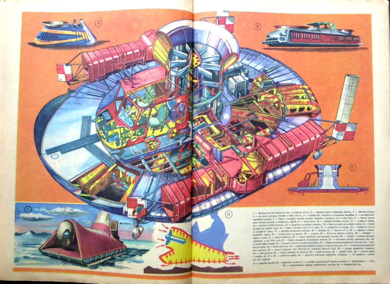 【商品番号】VE-017 【発行年】 1960年 【サイズ/ページ数】 28.5×20.5cm/32P チェコ語 【状態】 全体的に若干の折れ、ヤケがありますが概ね良好。 【内容】 「青年の科学と技術」というチェコスロバキア時代の雑誌。 高学年向けの科学技術雑誌で、文字も多めで図解も本格的に描かれているものが多く、教育レベルの高さが感じられますが、表紙をはじめとしてレトロ感溢れるイラストや写真がとても素敵です。 ホバークラフトの特集。 【価格】 \1500 |