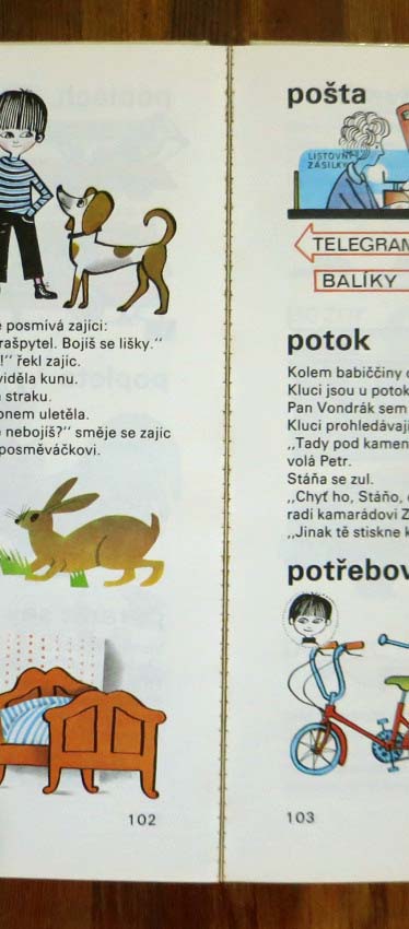 【商品番号】CE-295 【絵/文】 Helene Rokytova/Milena Lukesova、Bohumil Riha 【発行年/出版社】 1986/ALBATROS 【サイズ/ページ数】 29×21cm/190P ハードカバー チェコ語 【イラスト】 全てのページにカラーイラスト。 【状態】 ノド割れして半分程外れかけているページあり。その他概ね良好。 【内容】 ヘレナ・ロキトヴァーがイラストを描いているチェコの子供向け百科事典。 アルファベット順に様々な単語が可愛いイラストと共に掲載されているので、チェコ語の勉強にも最適です。 【価格】 \4300 |