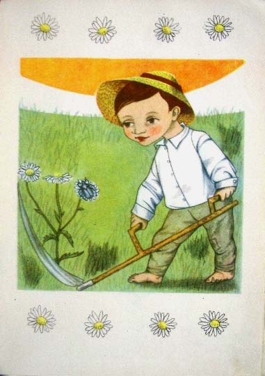 【商品番号】CE-023 【絵/文】 Kveta Hnilickova/Frantisek Hrubin 【発行年/出版社】 1946年/PRACE 【サイズ/ページ数】 23.8×17.3cm/40P ハードカバー チェコ語 【イラスト】 全ての見開きにカラーイラスト。 【状態】 表紙にに破れ、痛み、汚れ。全体的に痛みがあり、汚れ、小さな破れ、のど割れが数箇所にあります。 【内容】 フランチシェク・フルビーンの詩にKveta Hnilickovaの味わいのある素敵なイラストが添えられた絵本。 1946年発行の古い作品で、状態はあまり良くありませんが、古い紙に発色の良い綺麗な印刷が素晴らしい絵本です。 【価格】 SOLD OUT |