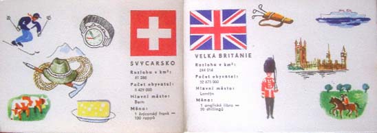 【商品番号】CE-338 【絵/文】 Jaroslav Sebesta/Josef Subrt 【発行年/出版社】 1962年/SNDK 【サイズ/ページ数】 7.5×10.5cm/32P ソフトカバー チェコ語 【イラスト】 ほぼ全てのページにカラーイラスト(アメリカ編は10ページが文字データ)。 【状態】 若干の痛み、汚れがありますが、概ね良好。 【内容】 「KUKATKO」という小さな学習絵本シリーズの「世界の国旗」初版4冊コンプリート。 各国の国旗がそれぞれの国をイメージさせるイラストと共に紹介されています。 ヨーロッパ、アフリカ、アメリカ、アジア・オーストラリアの4冊コンプリート・セットです。 【価格】 \4000 |