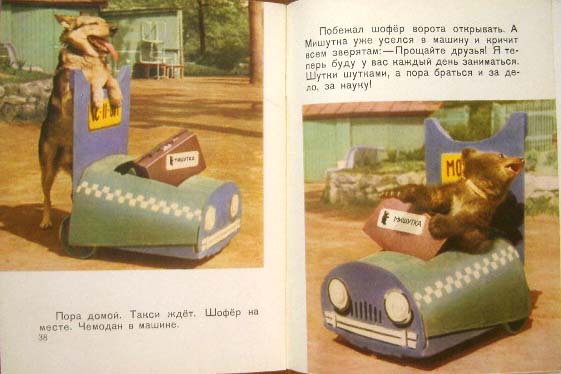 【商品番号】CE-988 【写真/文】 【発行年/出版社】 1961年/ 【サイズ/ページ数】 25×19cm/40P ソフトカバー ロシア語 【イラスト】 全てのページにカラー写真。 【状態】 表紙に破れ、若干痛み。シワ、若干の汚れのあるページあり。その他概ね良好。 【内容】 クマを中心に、ゾウ、サル、ブタ、アシカなど、動物園の動物たちのカワイイ姿がレトロなカラー写真で掲載されている冊子タイプの写真絵本。 1961年発行のロシアの古い作品で、味のあるカラー写真が素敵です。 【価格】 SOLD OUT |