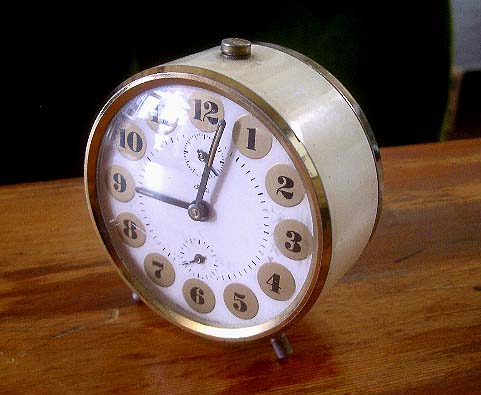 チェコスロバキア時代のPRIM社製ヴィンテージの目覚まし時計(手巻き) サイズ 11×9.8×5cm 状態 若干遅れますが概ね正常に可動します。(調整できます)。ガラスに傷。裏面にヘコミ。全体的に小さな傷が数箇所あり。 おもちゃの太古のようなカラカラという音で、ベルを止める時には上部のボタンを押します。