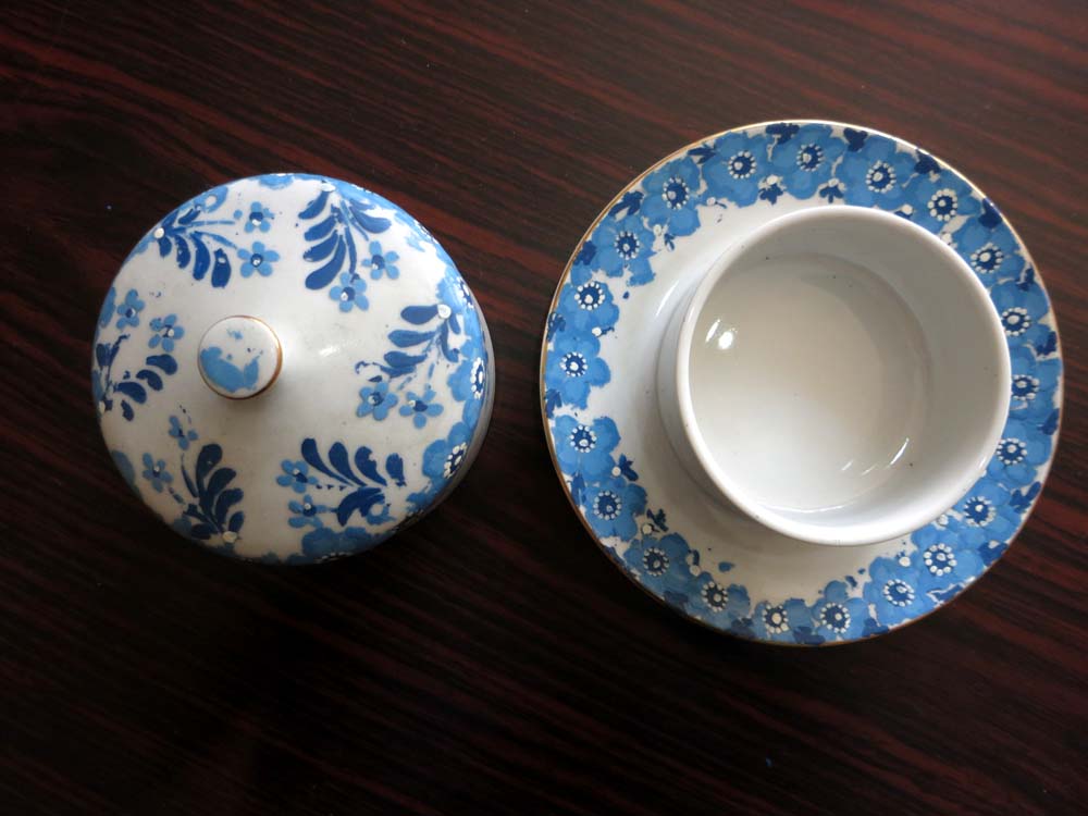 チェコスロバキア時代のBOHEMIA製の陶器の小物入れ。 元は白地に金とオレンジのラインが入ったものですが、上から手書きでフォークロアな花模様描かれていて、それが所々剥がれています。 年代不明。 サイズ 17×17×10cm 状態 手描きの模様が一部剥がれて来ています。本体は概ね良好。