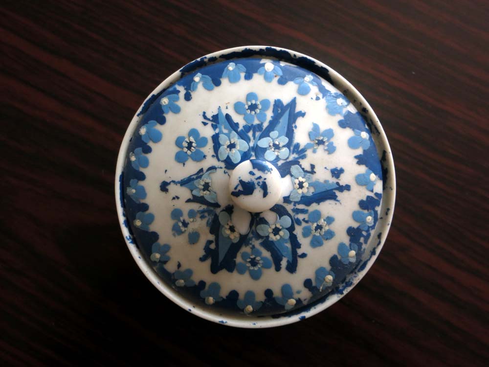 チェコスロバキア時代のBOHEMIA製の陶器の小物入れ。 元は白地ものですが、上から手書きでフォークロアな模様が描かれていて、それが所々剥がれています。 年代不明。 サイズ 10.5×10.5×8cm 状態 手描きの模様が一部剥がれて来ています。底に若干の欠けがありますが、その他概ね良好。