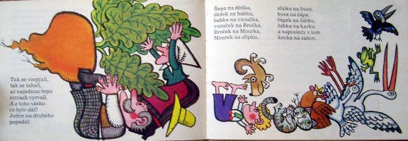 【商品番号】CE-890 【絵/文】 Ludek Vimr/Julian Tuwim 【発行年/出版社】 1975/ALBATROS 【サイズ/ページ数】 17×24.5cm/80P ハードカバー チェコ語 【イラスト】 ほぼ全てのページにカラーイラスト。 【状態】 表紙に若干痛み。14ページに渡ってシワのあるページあり。若干汚れがあるページがありますが、その他概ね良好。 【内容】 短編の童話集にルジェク・ヴィムルのコミカルなイラストが描かれている楽しい絵本。 【価格】 SOLD OUT |