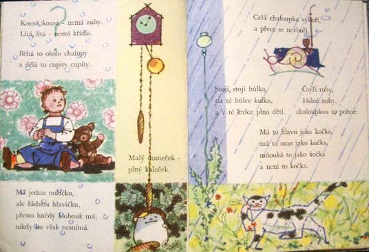 【商品番号】CE-503 【絵/文】 Adolf Zabransky/ 【発行年/出版社】 1963/SNDK 【サイズ/ページ数】 33×24.7cm/62P ハードカバー チェコ語 【イラスト】 全てのページにカラーイラスト。 【状態】 カバーなし。表紙に若干痛み。その他概ね良好。 【内容】 アドルフ・ザブランスキーの魅力が満喫できる大型絵本で、活き活きと遊ぶ子供たちの姿などが鮮やかな色彩で画面いっぱいに描かれています。 1978年発行のこちらの絵本と内容は同じですが、こちらは1963年発行の初版で、表紙カバーが付き、サイズも少し違います。 【価格】 SOLD OUT |