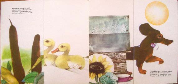 【商品番号】CE-940 【絵/文】 Ludek Manasek/Tomas Janovic 【発行年/出版社】 1975/Mlada Leta 【サイズ/ページ数】 20.3×21.8cm/8P ハードカバー チェコ語 【イラスト】 全てのページにカラーイラスト。 【状態】 表紙から全てのページに渡って角に若干傷み。表紙に若干の汚れ。折れ跡、若干汚れのあるページがあれますが、その他概ね良好。 【内容】 ルヂェク・マニャーセックがイラストを手がけている、横にパタパタ広げて行く楽しい仕掛け絵本。 カワイイ動物たちが次々登場します。 【価格】 SOLD OUT |